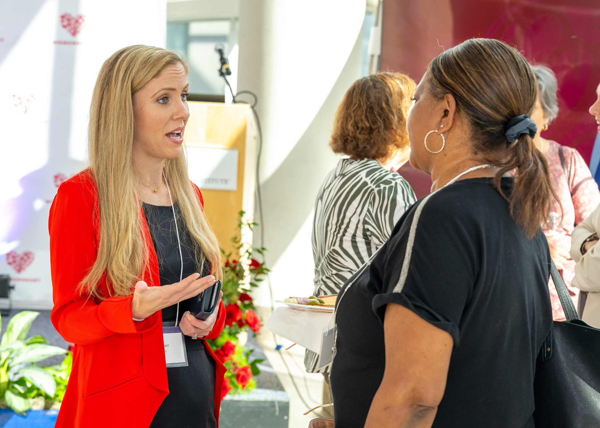Following the presentations, the event shifted to a celebration of support. Houston-area WomenHeart Champions Kimberly Connell and Tannie Coward shared their own heart-disease journeys, emphasized the importance of support groups for women living with heart disease, and described their roles as community educators and heart-health advocates.