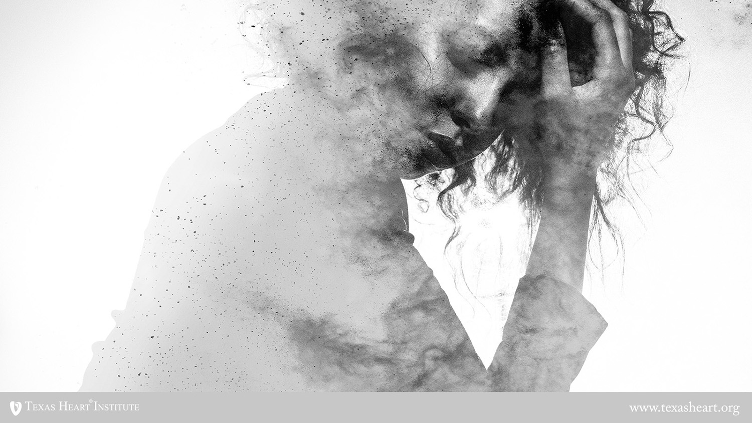 Subtle woman's form in an unhappy pose double exposed with a monochromatic paint splatter photographic effect
