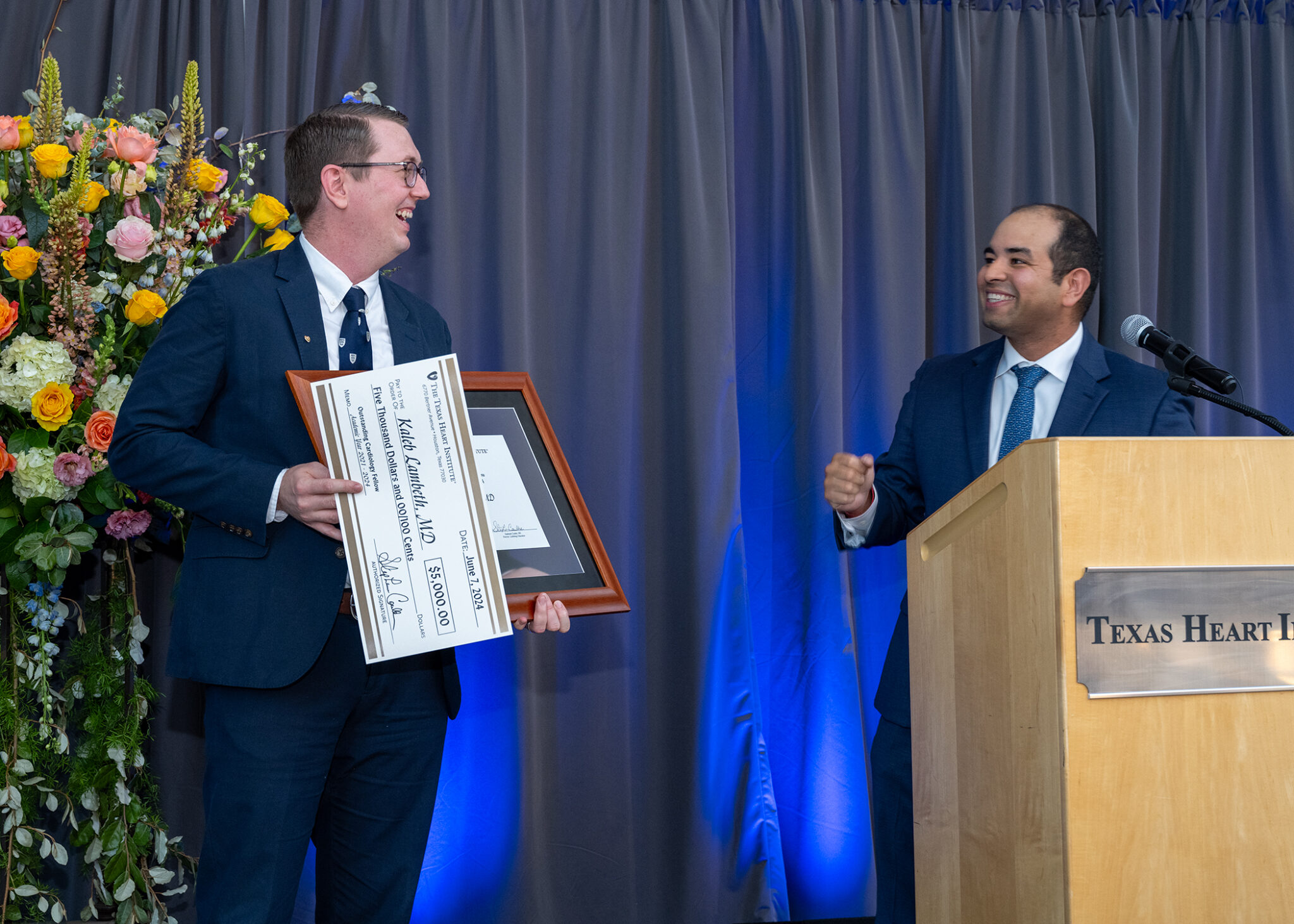 The programs’ teaching faculty honored Kaleb D. Lambeth, MD, with the Tauber Outstanding Fellow of the Year Award. The Robert J. Hall Teaching Award recipient for 2024 was Ajith P. Nair, MD. This annual award, presented by the third-year cardiology fellows to a member of the teaching faculty, recognizes excellence in clinical instruction.