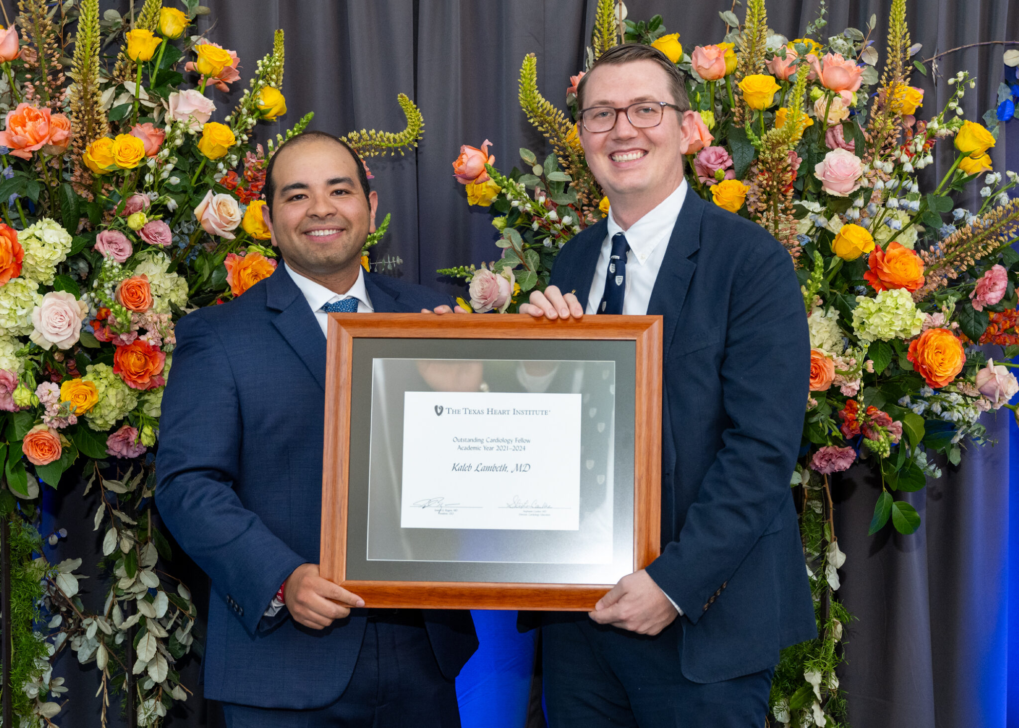Joseph G. Rogers, MD, The Institute’s President and CEO, and Joanna Molina Razavi, MD, THI Cardiac Society President, welcomed the families and friends that supported the graduates throughout their training and emphasized the magnitude of the accomplishments being celebrated. Stephanie Coulter, MD, and Jorge Escobar, MD, leaders of the Cardiovascular Disease Fellowship, stressed the professional confidence that the program faculty had in the graduates and the lasting personal ties developed throughout their training.